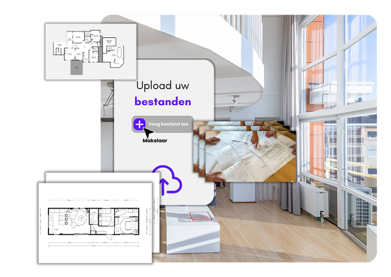 Met Floorplan lever je eenvoudig je plattegronden in en ontvang je een vastgoedpresentatie, zodat je vastgoedideeën perfect worden gepresenteerd.